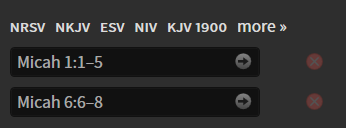 Enter the readings into the box. For readings that span multiple chapters, you will have to break up the chapters. Press the -> button to the right to add the scripture reading to the content.